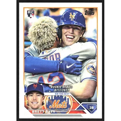 This is a 2023 Topps Update Brett Baty Rookie Debut baseball card. The card is #US158 and pictures show condition. Team(s): New York Mets Rookie Card (RC)