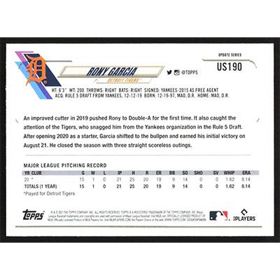 This is a 2023 Topps Update Rony Garcia baseball card. The card is #US190 and pictures show condition. Team(s): Washington Nationals Rookie Card (RC)