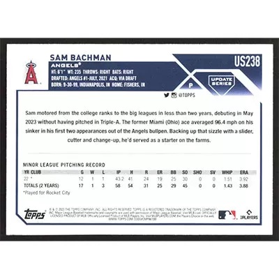 This is a 2023 Topps Update Sam Bachman baseball card. The card is #US238 and pictures show condition.
