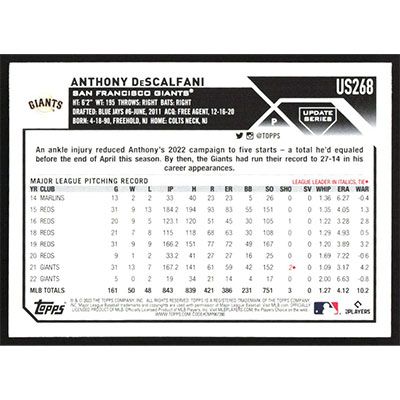 This is a 2023 Topps Update Anthony DeScalfani UER baseball card. The card is #US268 and pictures show condition.