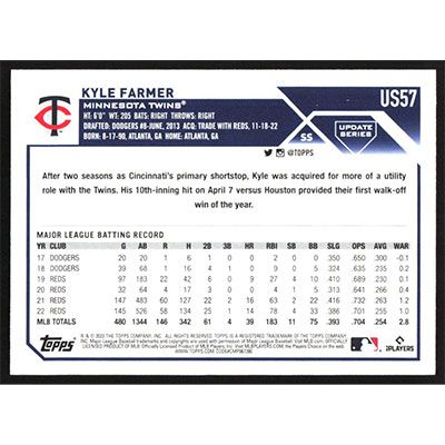 This is a 2023 Topps Update Kyle Farmer baseball card. The card is #US57 and pictures show condition.