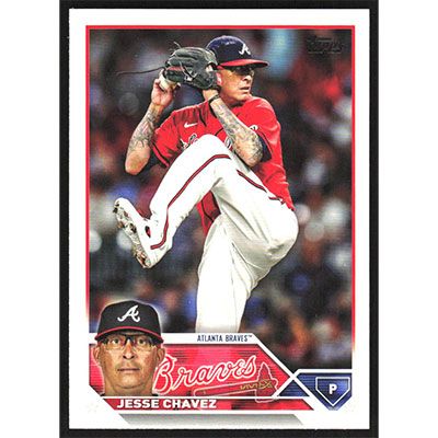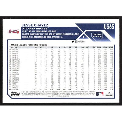 This is a 2023 Topps Update Jesse Chavez baseball card. The card is #US65 and pictures show condition.