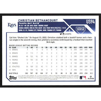 This is a 2023 Topps Update Christian Bethancourt baseball card. The card is #US94 and pictures show condition.