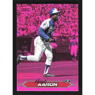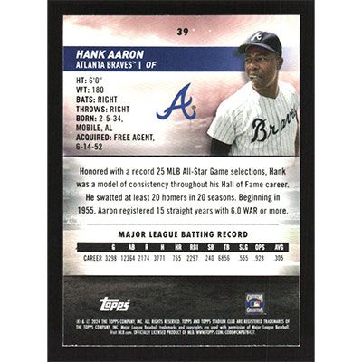 This is a 2024 Stadium Club Pink Foil Hank Aaron baseball card. The card is #39 and pictures show condition.