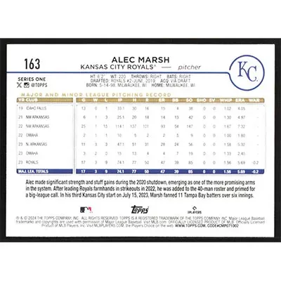 This is a 2024 Topps Alec Marsh baseball card. The card is #163 and pictures show condition.