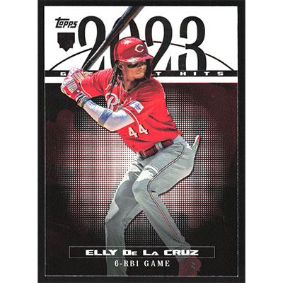 This is a 2024 Topps '23 Greatest Hits Elly De La Cruz baseball card. The card is #23GH-25 and pictures show condition. Team(s): Cincinnati Reds Rookie Card (RC)