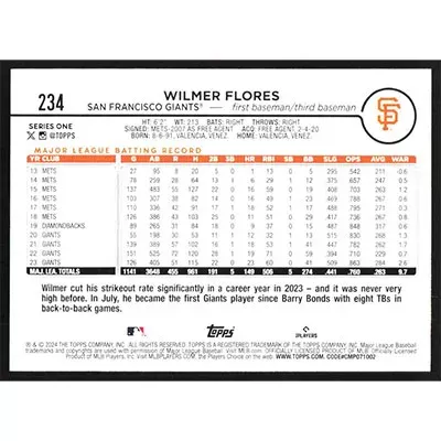 This is a 2024 Topps Wilmer Flores baseball card. The card is #234 and pictures show condition.