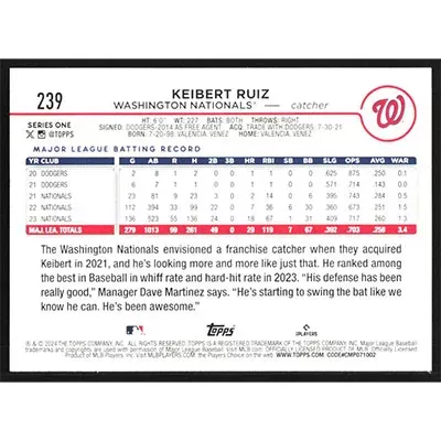 This is a 2024 Topps Keibert Ruiz baseball card. The card is #239 and pictures show condition.