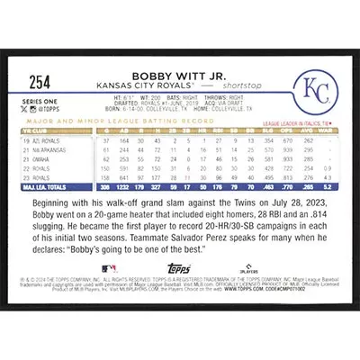 This is a 2024 Topps Bobby Witt Jr. baseball card. The card is #254 and pictures show condition.