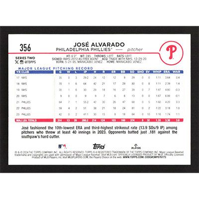 This is a 2024 Topps Jose Alvarado baseball card. The card is #356 and pictures show condition.
