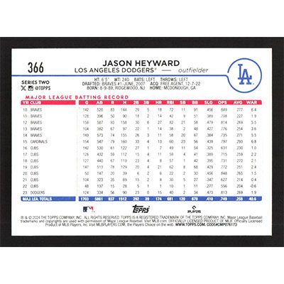 This is a 2024 Topps Jason Heyward baseball card. The card is #366 and pictures show condition.