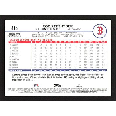 This is a 2024 Topps Rob Refsnyder baseball card. The card is #415 and pictures show condition.