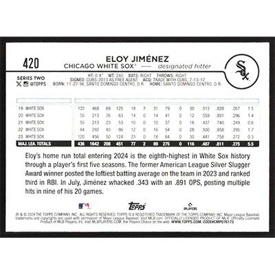 This is a 2024 Topps Eloy Jimenez baseball card. The card is #420 and pictures show condition.
