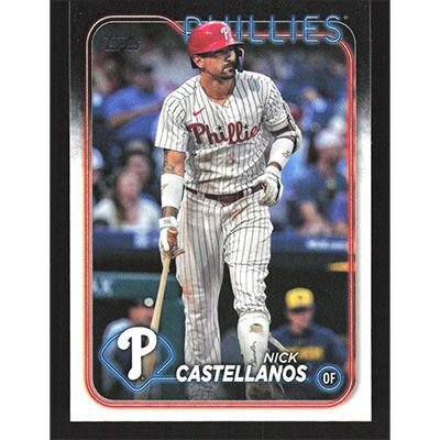 This is a 2024 Topps Nick Castellanos baseball card. The card is #421 and pictures show condition.