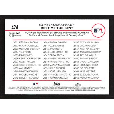 This is a 2024 Topps Mookie Betts/Rafael Devers Checklist Best of the Best baseball card. The card is #424 and pictures show condition. Team(s): Los Angeles Dodgers/Boston Red Sox