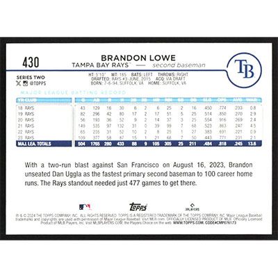 This is a 2024 Topps Brandon Lowe baseball card. The card is #430 and pictures show condition.