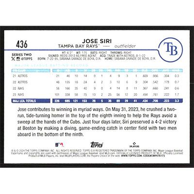 This is a 2024 Topps Jose Siri baseball card. The card is #436 and pictures show condition.