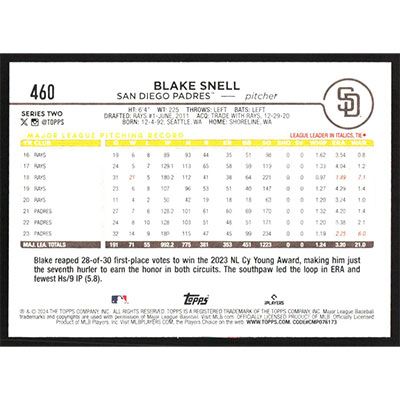 This is a 2024 Topps Blake Snell baseball card. The card is #460 and pictures show condition.