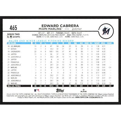 This is a 2024 Topps Edward Cabrera baseball card. The card is #465 and pictures show condition.