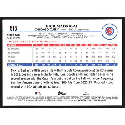 This is a 2024 Topps Nick Madrigal baseball card. The card is #515 and pictures show condition.
