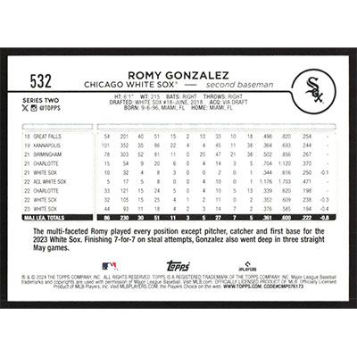This is a 2024 Topps Romy Gonzalez baseball card. The card is #532 and pictures show condition.