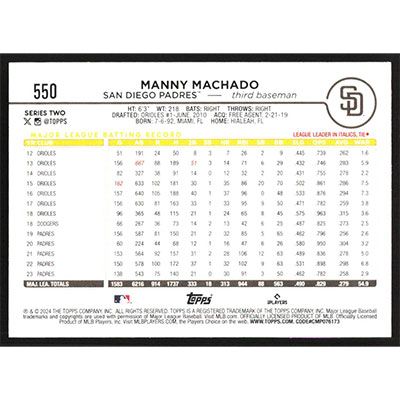 This is a 2024 Topps Manny Machado baseball card. The card is #550 and pictures show condition.