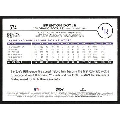 This is a 2024 Topps Brenton Doyle baseball card. The card is #574 and pictures show condition.