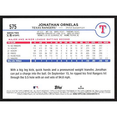 This is a 2024 Topps Jonathan Ornelas baseball card. The card is #575 and pictures show condition.