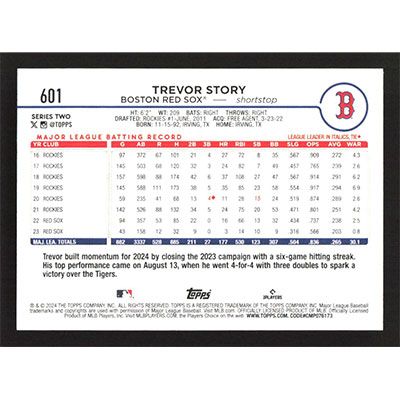 This is a 2024 Topps Trevor Story baseball card. The card is #601 and pictures show condition.
