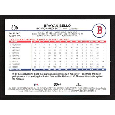 This is a 2024 Topps Brayan Bello Future Stars baseball card. The card is #606 and pictures show condition.