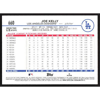 This is a 2024 Topps Joe Kelly baseball card. The card is #660 and pictures show condition.