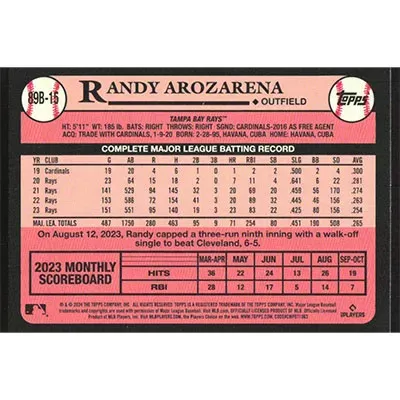 This is a 2024 Topps '89 Randy Arozarena baseball card. The card is #89B-15 and pictures show condition.