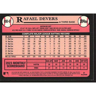 This is a 2024 Topps '89 Rafael Devers baseball card. The card is #89B-61 and pictures show condition.