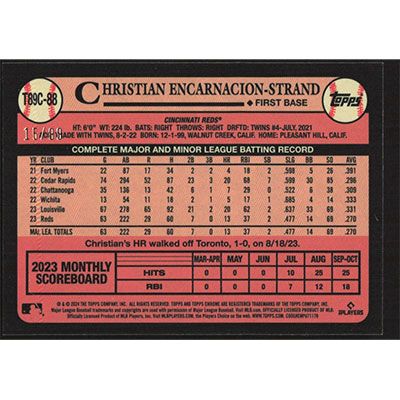 This is a 2024 Topps '89 Silver Pack Chrome Green Refractors Christian Encarnacion-Strand baseball card. The card is #T89C-88 and pictures show condition.