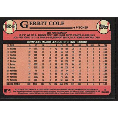 This is a 2024 Topps '89 Silver Pack Chrome Gerrit Cole baseball card. The card is #T89C-46 and pictures show condition.