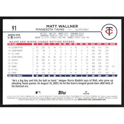 This is a 2024 Topps Matt Wallner baseball card. The card is #91 and pictures show condition.