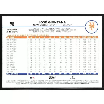 This is a 2024 Topps Jose Quintana baseball card. The card is #98 and pictures show condition.