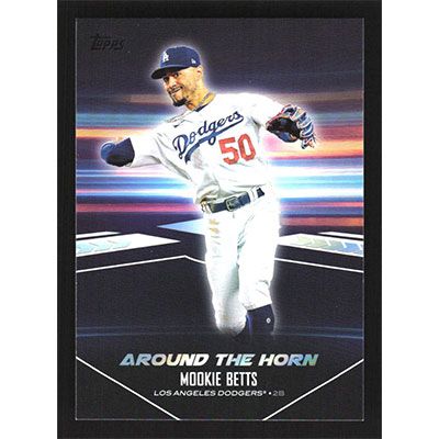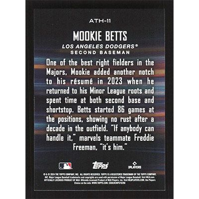 This is a 2024 Topps Around the Horn Mookie Betts baseball card. The card is #ATH-11 and pictures show condition.