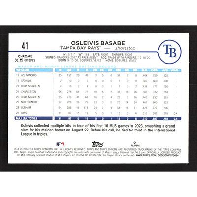 This is a 2024 Topps Chrome Osleivis Basabe baseball card. The card is #41 and pictures show condition.