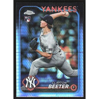 This is a 2024 Topps Chrome Update Prism Refractors Clayton Beeter baseball card. The card is #USC118 and pictures show condition.
