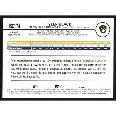 This is a 2024 Topps Chrome Update Tyler Black baseball card. The card is #USC174 and pictures show condition.