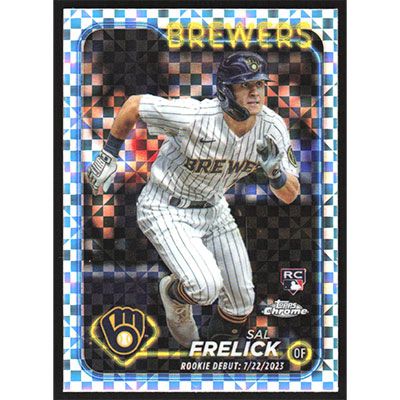 This is a 2024 Topps Chrome Update X-Fractors Sal Frelick Rookie Debut baseball card. The card is #USC61 and pictures show condition. Team(s): Milwaukee Brewers Rookie Card (RC)