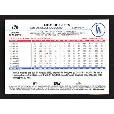 This is a 2024 Topps Chrome X-Fractors Mookie Betts baseball card. The card is #296 and pictures show condition.
