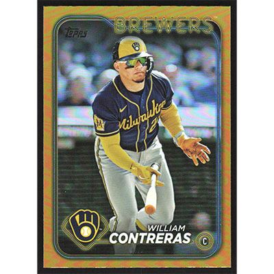 This is a 2024 Topps Gold Foil William Contreras baseball card. The card is #61 and pictures show condition.