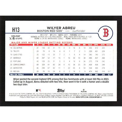 This is a 2024 Topps Holiday Wilyer Abreu baseball card. The card is #H13 and pictures show condition.
