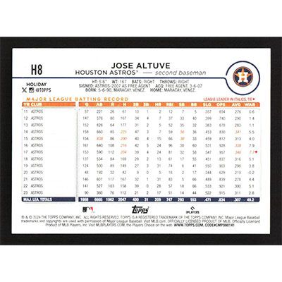 This is a 2024 Topps Holiday Jose Altuve baseball card. The card is #H8 and pictures show condition.