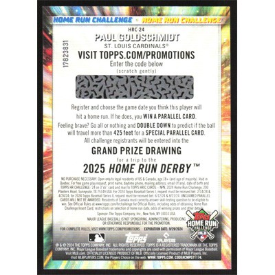 This is a 2024 Topps Home Run Challenge Code Cards Paul Goldschmidt baseball card. The card is #HRC-24 and pictures show condition. Team(s): St. Louis Cardinals