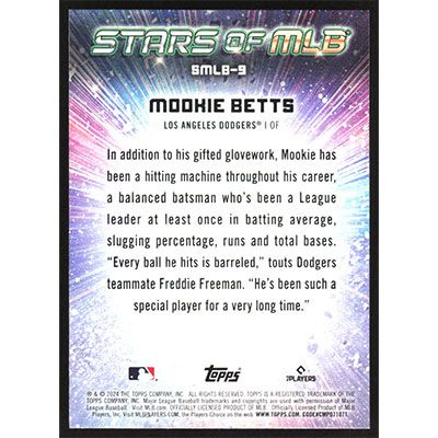 This is a 2024 Topps Stars of MLB Mookie Betts baseball card. The card is #SMLB-9 and pictures show condition.