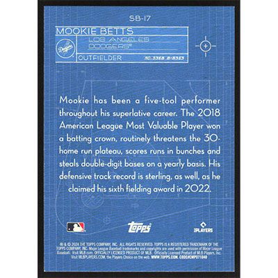 This is a 2024 Topps Superstar Blueprint Mookie Betts baseball card. The card is #SB-17 and pictures show condition.