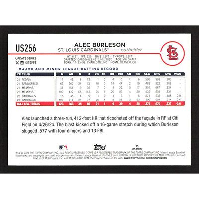 This is a 2024 Topps Update Alec Burleson baseball card. The card is #US256 and pictures show condition.